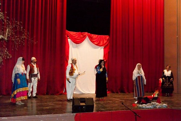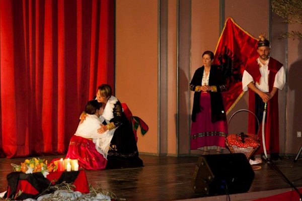Salla mbushet dalëngadalë dhe në një moment tërë spektatorët ngrihen në këmbë, duke përshëndetur me duartrokitje hyrjen e grupit arbëresh të veshur me kostumet tipike që ruajnë bukurinë dhe autenticitetin e tyre prej më shumë se 500 vjet. Emocionet bëhen edhe më të forta, kur e reja arbëreshe Maria Ferrari këndon himnin kombëtar shqiptar. Kjo vajzë studion në Romë dhe ka ardhur që nga Roma për shfaqjen. Ajo e ka kënduar himnin tonë edhe në parlamentin e Ontarios në Kanada, duke emocionuar jo vetëm shqiptarët e diasporës së atjeshme, por edhe anëtarët e parlamentit kanadez.