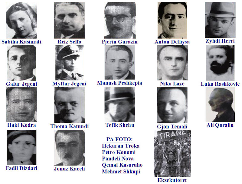 Befas, në krahun e shkretë të oborrit të Ambasadës Sovjetike në rrugën e Durrësit në Tiranë, shpërtheu një sasi e pakët dinamiti, nga e cila u thyen vetëm disa xhama. Dhe ja, brenda një nate, sipas listave të përgatitura qysh më parë, u shoqëruan të lidhur mbi treqind vetë, midis tyre, Sabiha Kasimati, dijetare e Institutit të Shkencave, Jonuz Kaceli, nga familja e madhe e Kacelëve, Fejzi Dika, i lauruar në Montepelier për filozofi dhe pedagogji, poet e mendimtar patriot, Ing. Vasil Noçka, një prej yjeve të Universitetit të Shtutgardit, Prof. Ibrahim Babamusta, personalitet i njohur i kulturës perëndimore, Gaqo Qano, doktor i kirurgjisë dentare, i kthyer nga studimet në SHBA, Gani Strazimiri, inxhinier i shquar i ndërtimit, Rrok Radovani, profesor i kimisë, Tefik Gabrani, ekonomist, zotërues i disa gjuhëve, patriot i kthyer nga Selaniku në atdhe për Kosovën e shumë të tjerë.