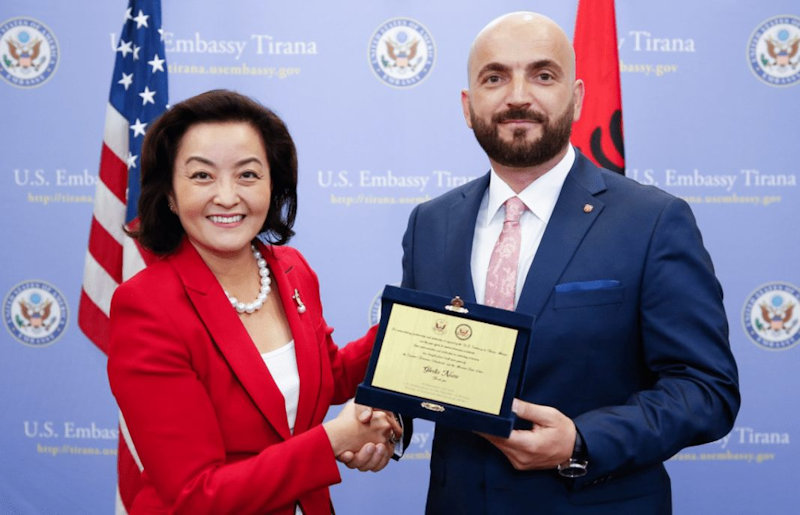 Në certifikatë shkruhej “Për partneritetin e jashtëzakonshëm dhe dedikimin në mbështetje të Ambasadës Amerikane në Tiranë Shqipëri, dhe përpjekjet e përbashkëta në luftën botërore ndaj terrorizmit. Vendosmëria juaj dhe përkushtimi në luftën kundër terrorizmit ka sjellë kredite të mëdha e të shtuara tek vetja juaj edhe për Drejtorinë e Antiterrorit dhe Policinë e Shtetit”. /Newsbomb.al