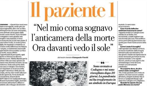 Në dy muaj Mattia ka jetuar një jetë të tërë: “U sëmura, do të vdisja, pastaj u ngrita përsëri”. Ndërkohë, gruaja dhe nëna e tij gjithashtu ishin infektuar, babai i tij kishte vdekur dhe epidemia e Coronavirus kishte shpërthyer në Itali. “Atëherë u zgjova dhe pashë të lindte vajzën time.” I ashtuquajturi Pacienti Një nga Codogno rrëfen në një intervistë për gazetën Repubblica ditët para zbulimit të infektimit nga Covid, sëmundjen, koman, zgjimin dhe shërimin.