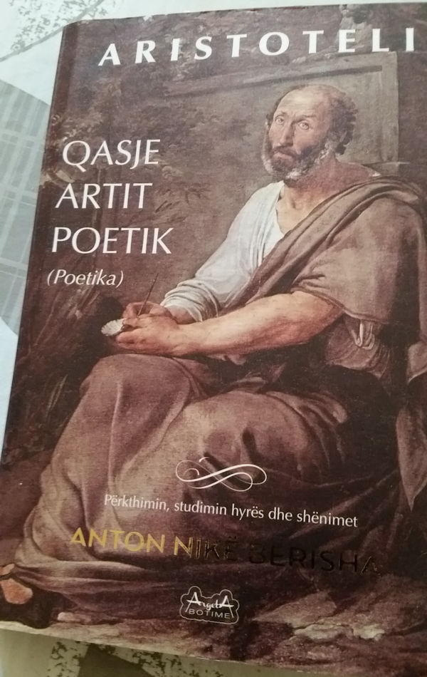 I pari: T’i ofrojë lexuesit tonë një përkthim që i afrohet sa më shumë që është e mundur tekstit të kësaj vepre të shquar të Aristotelit, që, edhe pse e shkruar rreth 2300 vjet më parë, vazhdon të bëjë jetë të gjallë, jo vetëm në mjediset e studiuesve të letërsisë e të kritikëve letrarë, po edhe të profesorëve universitarë, të studentëve e të nxënësve të rrafsheve të ndryshme, meqë është bërë pjesë edhe e programeve shkollore…